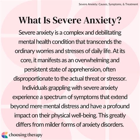 Severe anxiety isn't merely feeling nervous before a big event; it refers to a clinical level of distress and impairment. Individuals experiencing severe anxiety often feel an overwhelming sense of dread, impending doom, or a constant state of hyper-vigilance. This chronic state of heightened arousal makes relaxation extremely difficult and exhausting.