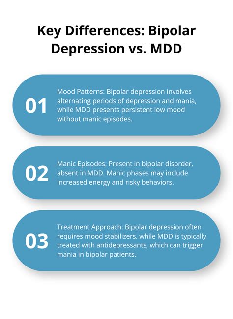 Therapeutic approaches also vary, with Interpersonal and Social Rhythm Therapy (IPSRT) being specifically designed for the unique needs of bipolar patients. Correctly identifying MDD ensures that the patient is not subjected to unnecessary mood-stabilizing medications that carry different side-effect profiles.
